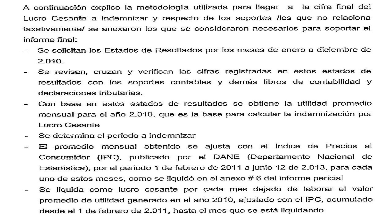 El municipio de Manizales solicitó la aclaración y complementación del dictamen, el 23 de julio de 2013. En respuesta, el 8 de agosto de 2013, el perito lo reiteró, y se pronunció de forma concreta sobre cuál fue la metodología utilizada para la realización del dictamen, así: