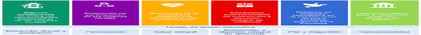 Palabras clave: equidad de género, autonomía económica, participación, salud, mujeres libres de violencia, paz y seguridad, institucionalidad, mujer rural.