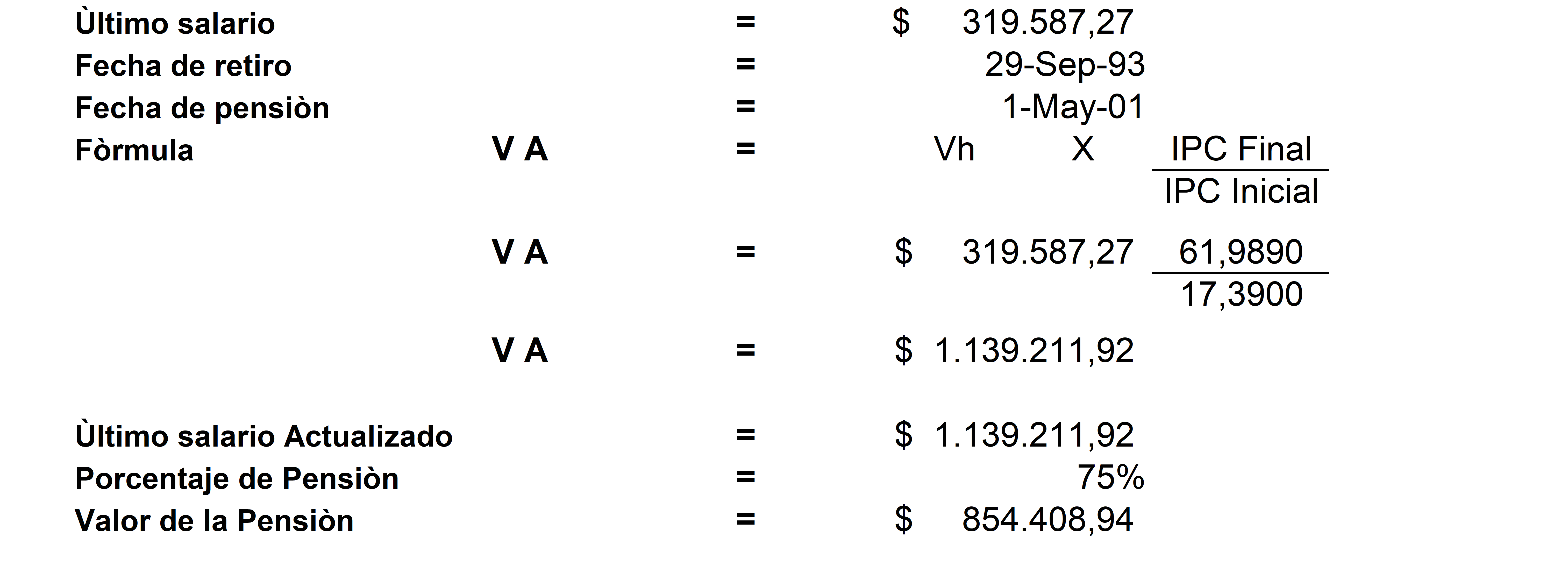 IPC Final = Índice de Precios al Consumidor de la última anualidad en la fecha de pensión.