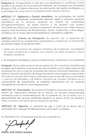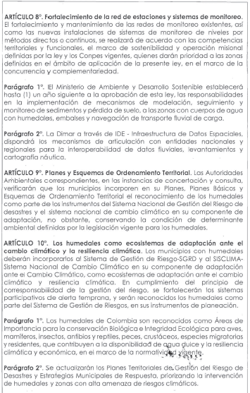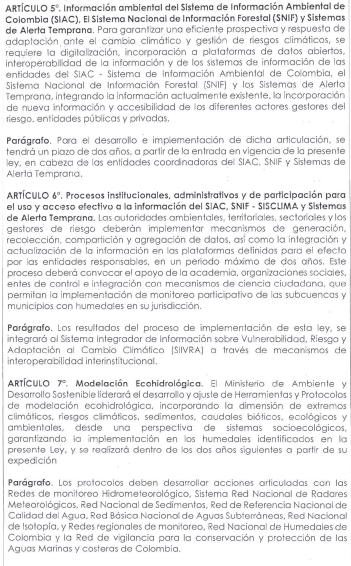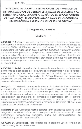 Por medio de la cual se Incorporan Los Humedales al Sistema Nacional de Gestión del Riesgos de Desastres y al Sistema Nacional de Cambio Climático en su Componente de Adaptación, se Adoptan Mecanismos en las Cuencas Hidrográficas y se Dictan Otras Disposiciones.