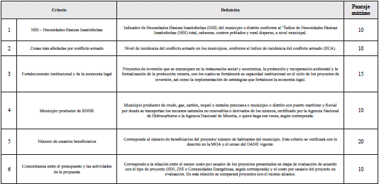 d) Los criterios de focalización, metodología de evaluación y la calificación para seleccionar los beneficiarios, así como los puntajes definidos para cada uno de ellos.