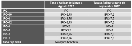 PARÁGRAFO 1o. La tasa de interés vigente de los créditos referidos en este artículo (antes del Plan de Auxilios Educativos Coronavirus COVID-19) debe ser superior al IPC.