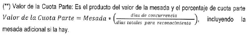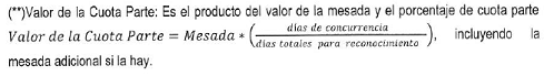 - (***) Para la cuota parte, la liquidación de los intereses se hace a partir del siguiente mes de la fecha de causación del pago, de esta manera mes a mes se causaran interés vencidos, aplicando la siguiente formula: