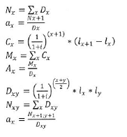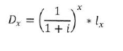Partiendo de las Tablas de Mortalidad de Rentistas dispuestas por la Superintendencia Financiera en la Resolución 1555 del 30 de Julio de 2010, se calculan los factores de conmutación: