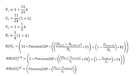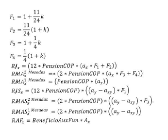 Se calculan las reservas de jubilación (RJ), de las mesadas adicionales (RMA), de supervivencia (RJS), de mesadas adicionales de supervivencia (RMAS) y de auxilio funerario (RAF)