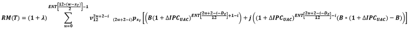 La reserva matemática calculada al final del mes T, estará dada por los siguientes casos:
