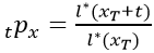 = Probabilidad de que una persona con x meses cumplidos, sobreviva
