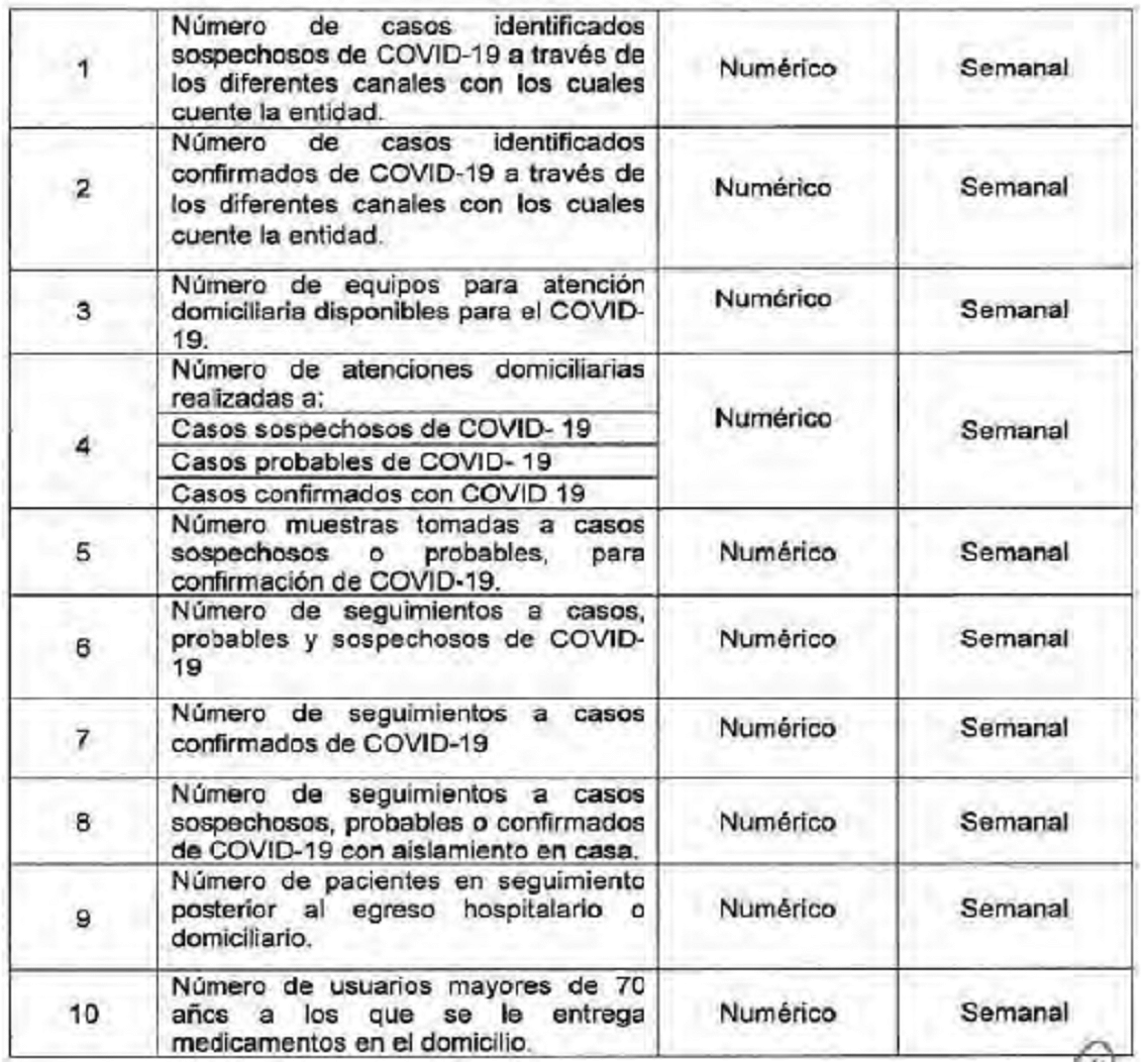 | PARA: | GOBERNACIONES, ALCALDIAS, SECRETARIAS DEPARTAMENTALES, DISTRITALES Y LOCALES DE SALUD, GERENTES DE INSTITUCIONES PRESTADORAS DE SERVICIOS DE SALUD - IPS ASIGNADAS PARA LA ATENCIÓN DE COVID-19, ENTIDADES ADMINISTRADORAS DE PLANES DE BENEFICIOS - EAPB Y DEMAS ENTIDADES DEL SISTEMA GENERAL DE SEGURIDAD SOCIAL EN SALUD RELACIONADAS CON LA PRESTACIÓN DE SERVICIOS DE SALUD. |