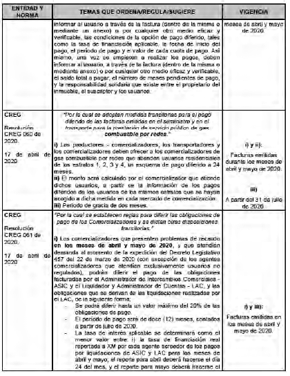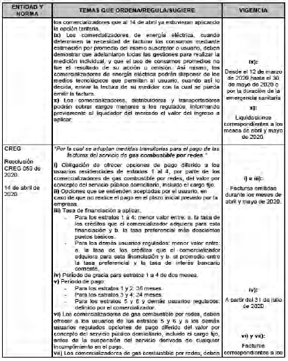 La Comisión de Regulación de Energía y Gas (CREG), en el marco de la declaratoria de la emergencia sanitaria y el Estado de Emergencia Económica, Social y Ecológica, ha expedido hasta la fecha, entre otras, las siguientes resoluciones: