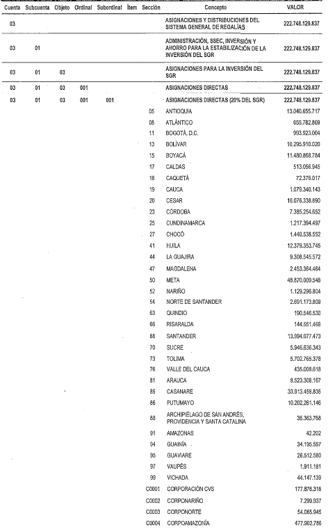 | 2 | 05 | 1 | 04 | CUENTA ÚNICA DEL SISTEMA GENERAL DE REGALÍAS | 222.748.129.837 | ||