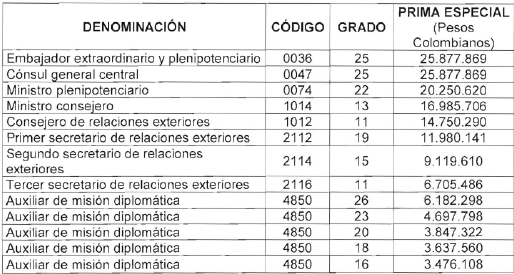 PRIMA ESPECIAL PARA LOS FUNCIONARIOS QUE PRESTEN SUS SERVICIOS EN LAS MISIONES COLOMBIANAS PERMANENTES ACREDITADAS EN EL EXTERIOR.