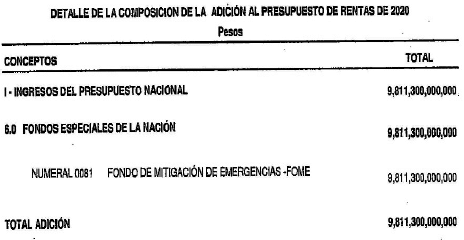 ADICIÓN AL PRESUPUESTO GENERAL DE LA NACIÓN 2020