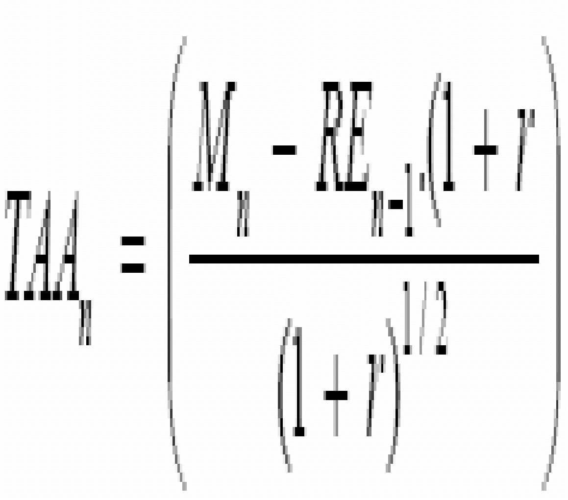 El valor de la Transferencia Adicional Anual TAAn será calculado anualmente a partir de las proyecciones de cálculo actuarial y la reserva en cuenta de la empresa en CAXDAC, estimadas con base en la información del año inmediatamente anterior al año en que se efectuarán las transferencias, mediante la siguiente fórmula: