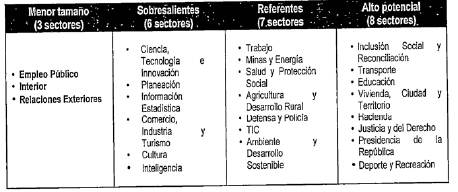 Para ello, los sectores son agrupados en cuatro perfiles de inversión histórica en ACTI, así: