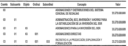 PRESUPUESTO DESTINADO A LA INVERSIÓN DEL SISTEMA GENERAL DE REGALÍAS.