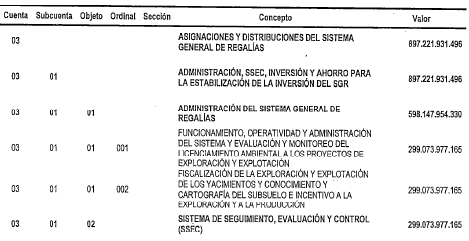 PRESUPUESTO DE GASTOS DEL SISTEMA GENERAL DE REGALÍAS.