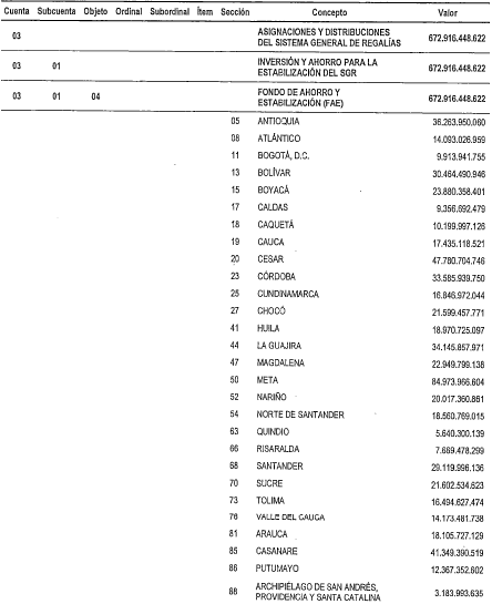 PRESUPUESTO DESTINADO AL AHORRO DEL SISTEMA GENERAL DE REGALÍAS.