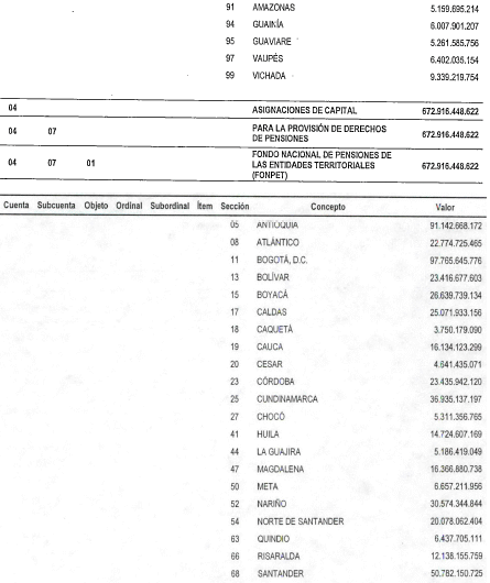 PARÁGRAFO 2o. Fondo Nacional de Pensiones de las Entidades Territoriales (Fonpet). En el rubro 04-07-01, correspondiente al “Fondo Nacional de Pensiones de las Entidades Territoriales (Fonpet)”, se incorporan la totalidad de los recursos para ser girados al Fondo Nacional de Pensiones de las Entidades Territoriales (Fonpet), estimados para el bienio 2023-2024.