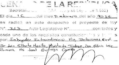 Presentado al Honorable Congreso de la República por el Ministro de Relaciones Exteriores y la Ministra del Trabajo.