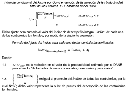 1.3. La multiplicación entre el promedio del Índice de todas las contralorías y el valor absoluto de la pérdida de productividad arroja un valor de ajuste Aj que puede ser atribuido a la pérdida de productividad generalizada por el Covid-19.