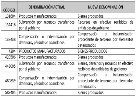ARTÍCULO 2o. Modificar la denominación de la siguiente cuenta y las siguientes subcuentas en la estructura del Catálogo General de Cuentas del Marco Normativo para Empresas que Cotizan en el Mercado de Valores, o que Captan o Administran Ahorro del Público: