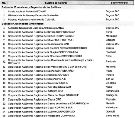 ARTÍCULO 11. CONTRALORÍA DELEGADA PARA EL MEDIO AMBIENTE. <Resolución derogada por el artículo 33 de la Resolución REG-EJE-0093 de 2021> La Contraloría Delegada para el Medio Ambiente será competente para ejercer la vigilancia y el control fiscal a los siguientes sujetos de control: