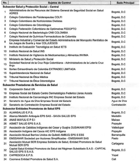 ARTÍCULO 13. CONTRALORÍA DELEGADA PARA EL SECTOR SALUD. <Resolución derogada por el artículo 33 de la Resolución REG-EJE-0095 de 2021> La Contraloría Delegada para el Sector Salud será competente para ejercer la vigilancia y el control fiscal a los siguientes sujetos de control: