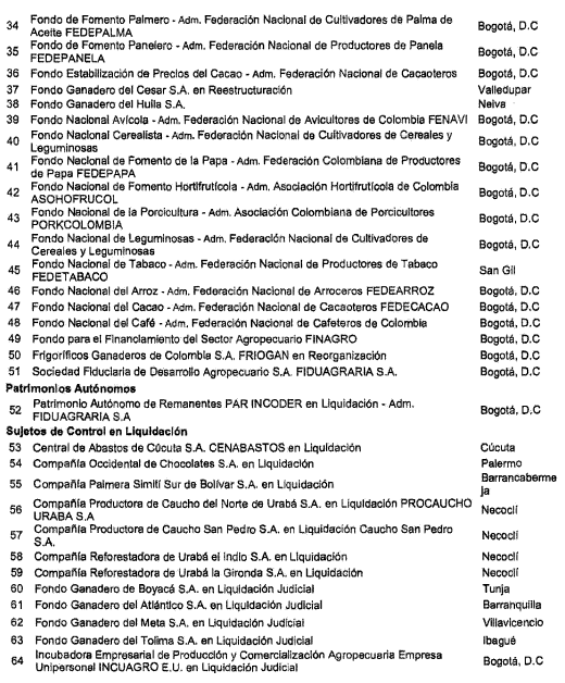 ARTÍCULO 2o. CONTRALORÍA DELEGADA PARA EL SECTOR AGROPECUARIO. <Resolución derogada por el artículo 33 de la Resolución REG-EJE-0150 de 2025> La Contraloría Delegada para el Sector Agropecuario será competente para ejercer vigilancia y control fiscal a las siguientes entidades: