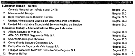 ARTÍCULO 14. CONTRALORÍA DELEGADA PARA EL SECTOR TRABAJO. <Resolución derogada por el artículo 33 de la Resolución REG-EJE-0150 de 2025> La Contraloría Delegada para el Sector Trabajo será competente para ejercer la vigilancia y el control fiscal a las siguientes entidades: