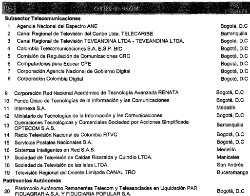 ARTÍCULO 4o. CONTRALORÍA DELEGADA PARA EL SECTOR DE TECNOLOGÍAS DE LA INFORMACIÓN Y LAS COMUNICACIONES. <Resolución derogada por el artículo 33 de la Resolución REG-EJE-0150 de 2025> La Contraloría Delegada para el Sector de Tecnologías de la Información y las Comunicaciones será competente para ejercer la vigilancia y el control fiscal a las siguientes entidades: