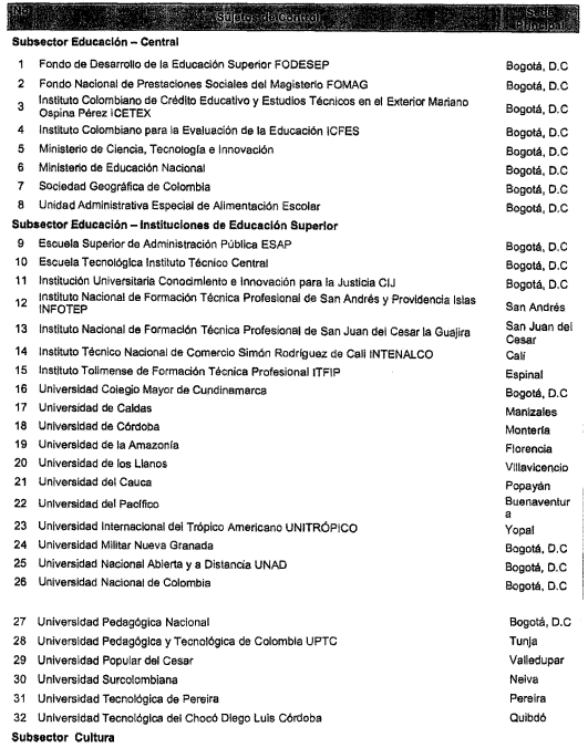 ARTÍCULO 6o. CONTRALORÍA DELEGADA PARA EL SECTOR EDUCACIÓN, CIENCIA Y TECNOLOGÍA, CULTURA, RECREACIÓN Y DEPORTE. <Resolución derogada por el artículo 33 de la Resolución REG-EJE-0150 de 2025> La Contraloría Delegada para el Sector Educación, Ciencia y Tecnología, Cultura, Recreación y Deporte será competente para ejercer la vigilancia y el control fiscal a las siguientes entidades: