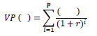 Este valor deberá ser calculado en aplicación de la función de valor presente del año 1 al año p, descontando cada variable a analizar con la tasa de descuento (r) definida en el ARTÍCULO 20 de la presente resolución, así: