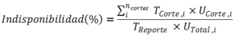 El porcentaje de horas faltantes respecto de un municipio se calculará como el cociente resultante de dividir la sumatoria de horas que no cuentan con el 100% de la cantidad de muestras en uno o varios indicadores sobre el total de horas a medir en un trimestre resultante de multiplicar 3 (semanas), por 7 (días de la semana), por 14 (horas de medición por día) y por el número de los puntos de medición del municipio.
