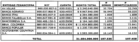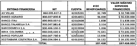 PARÁGRAFO 1o. Los recursos serán consignados en la cuenta de depósito (CUD) del Banco de la República que la entidad financiera indicó de acuerdo con la anterior tabla.