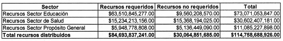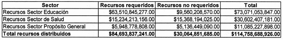 ARTÍCULO 3o. DISTRIBUCIÓN DE ENTIDADES TERRITORIALES. Distribuir y asignar por Sector entre las entidades territoriales, los recursos del Sistema General de Participaciones (SGP) correspondientes a la última doceava de la Asignación Especial de la vigencia 2020, de acuerdo con el Certificado de Disponibilidad Presupuestal No. 92121, y los valores establecidos en el Anexo 1 (once (11) folios), que hace parte integral de la presente Resolución. Los valores totales distribuidos y a asignar, serán los siguientes: