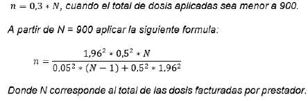 8.1.2.1. Para la validación de las vacunas aplicadas por cada prestador se obtendrá una muestra de tamaño n sobre el total de la información integrada de las plataformas Mi Vacuna COVID-19 y PAIWEB en cada uno de los procesos, de la siguiente manera: