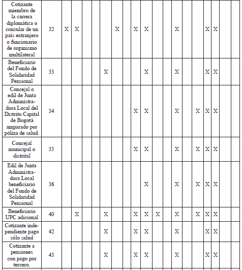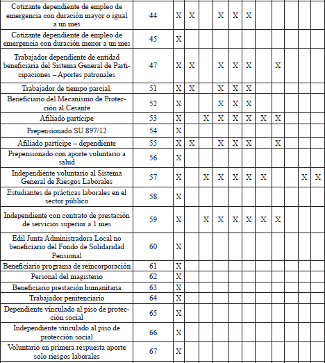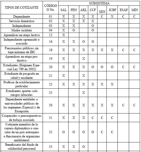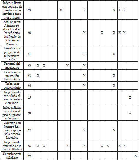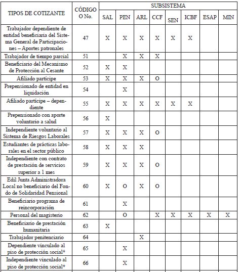*El aporte de estos tipos de cotizantes a pensiones corresponde al Piso de Protección Social