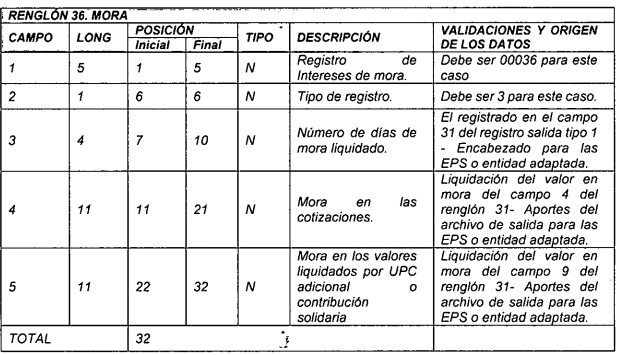 12 11 86 96 N Valor intereses de mora Para activos es el tomado en el campo 11 del registro tipo 5 del anexo técnico 2. Para pagadores de pensiones es el tomado en el campo 10 del registro tipo del anexo técnico 3.