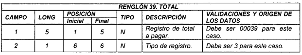 16 13 148 160 N Total a pagar a la administradora. Cálculo de la suma de los campos 14 y 15 del registro tipo 5.