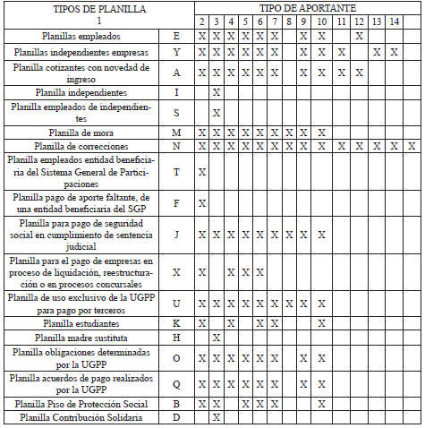 Resultado: Cuando en la información de una planilla reportada por un aportante se presente que el cruce entre tipo de planilla y tipo de aportante No sea “X”, el archivo no pasa la malla de validación y el operador de información le debe informar al aportante el error presentado”.