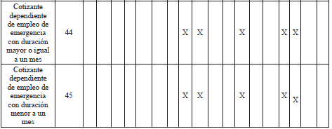 Cotizante dependiente de empleo de emergencia con duración menor a un mes 45XX