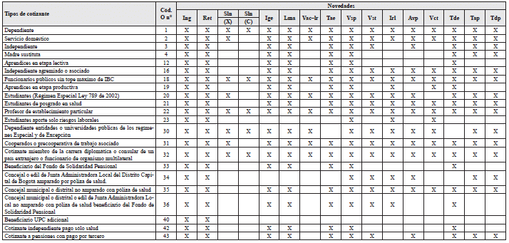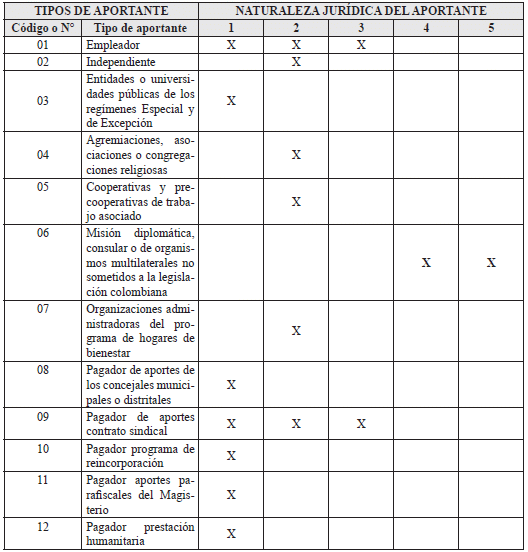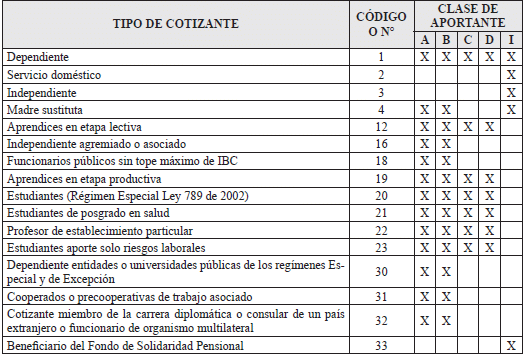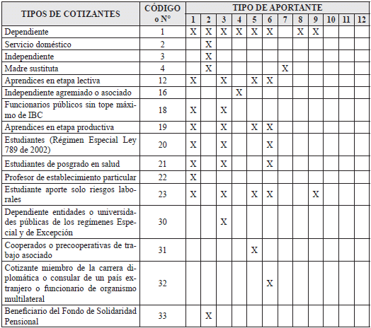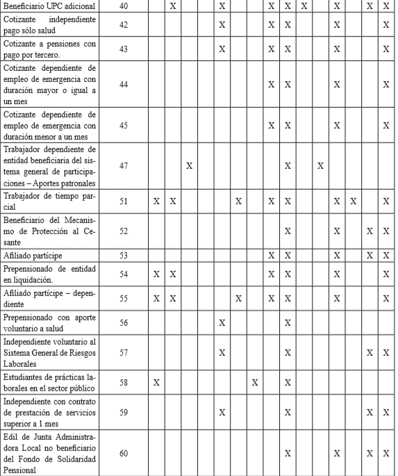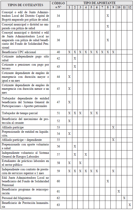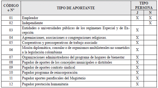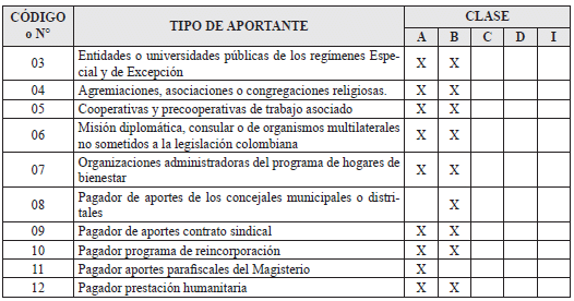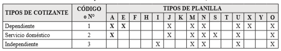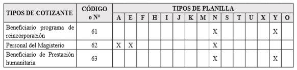 Este tipo de planilla deberá utilizarse cuando se paguen los aportes de los siguientes tipos de cotizantes: