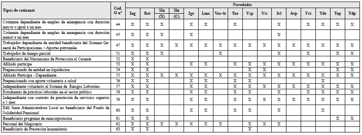 Para este tipo de cotizante es de carácter obligatorio el reporte de las novedades de ingreso y retiro. El reporte de las novedades de suspensión temporal del contrato de trabajo o licencia no remunerada o comisión de servicios, vacaciones, licencia remunerada, días de incapacidad por accidente de trabajo o enfermedad laboral, variación centros de trabajo, traslado desde otra administradora de pensiones y traslado a otra administradora de pensiones es de carácter informativo.