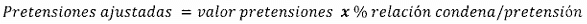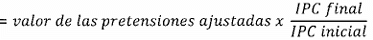 Con el fin de indexar el valor de las pretensiones de la demanda a la fecha actual, el apoderado debe dividir el IPC certificado por el DAÑE para el mes inmediatamente anterior a la fecha presente, entre el IPC certificado por el DAÑE para el mes en el cual se presentó la demanda. La cifra resultante se multiplica por el valor de las pretensiones que se pretende actualizar. El resultado es el valor indexado de las pretensiones de la demanda. La siguiente ecuación resume este procedimiento.