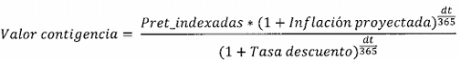 Inflación proyectada: es la tasa utilizada para proyectar el valor que se debe pagar en la fecha estimada de terminación del proceso (dt).