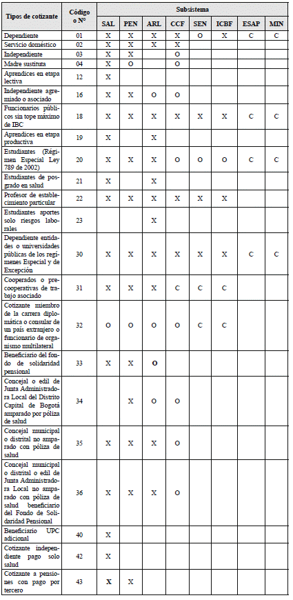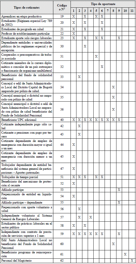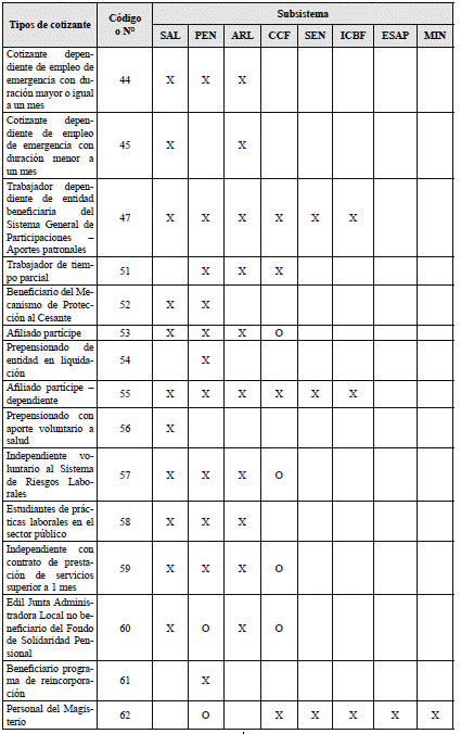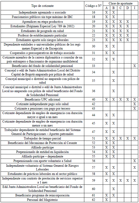 | TIPO DE COTIZANTE | DESCRIPCIÓN | SISTEMA AL QUE DEBE APORTAR |