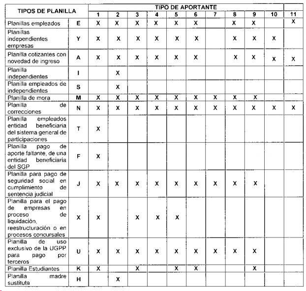 E. Planilla empleados: Es utilizada cuando se paguen los aportes de los siguientes tipos de cotizantes:
