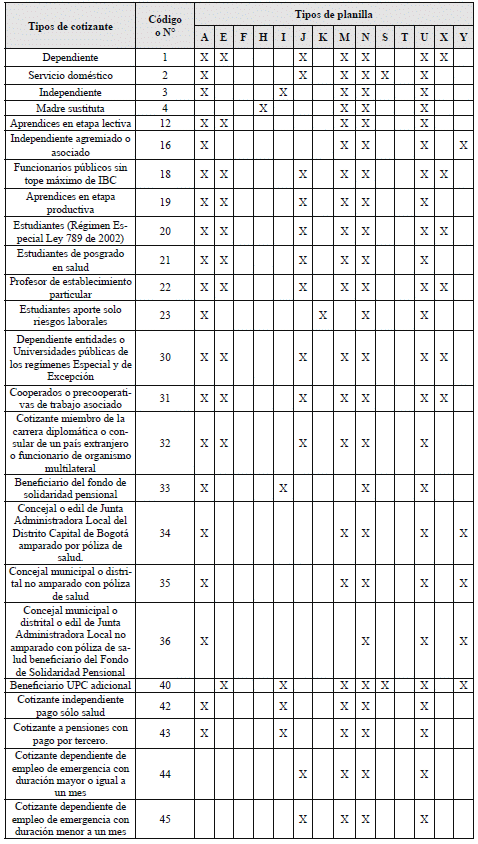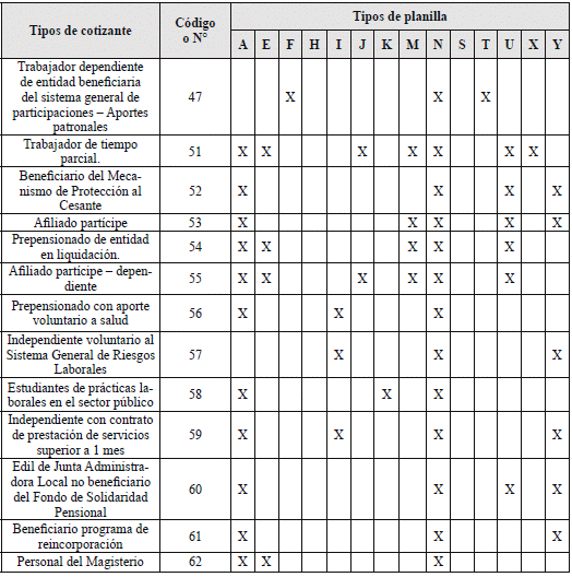 Este tipo de cotizante también puede ser utilizado para el pago de aportes al Sistema General de Seguridad Social Integral y Parafiscales de las madres comunitarias a través del tipo de planillas M o N para períodos anteriores a marzo de 2014.