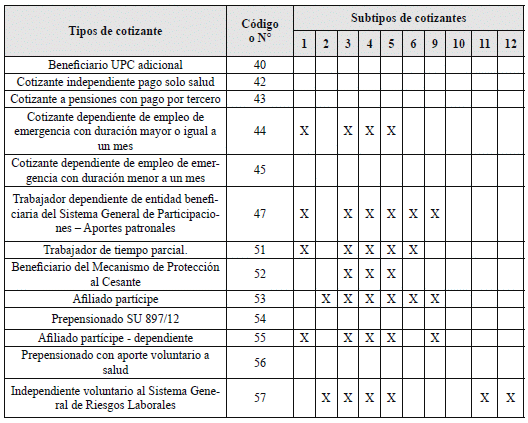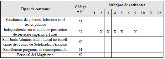 Que en el marco de las mesas de trabajo adelantadas con la Unidad de Gestión de Pensiones y Parafiscales (UGPP) y el Ministerio del Trabajo, se evidenció que existen aportantes que presuntamente evaden cotizaciones al Sistema General de Pensiones, razón por la cual es preciso realizar validaciones para el uso del subtipo de cotizante: "1. Dependiente pensionado por vejez, jubilación o invalidez activo", "2. Independiente pensionado por vejez, jubilación o invalidez activo", "3. Cotizante no obligado a cotización a pensiones por edad", "4. Cotizante con requisitos cumplidos para pensión", "5. Cotizante a quien se le ha reconocido indemnización sustitutiva o devolución de saldos" y "9. Cotizante pensionado con mesada igual o superior a 25 smlmv".