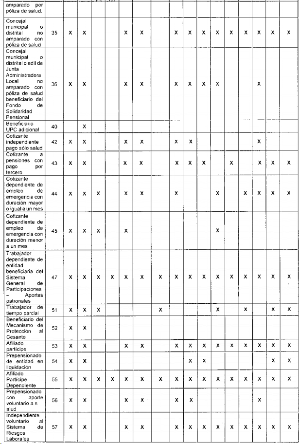 | 43 | Cotizante a pensiones con pago por tercero. | Salud y pensión |